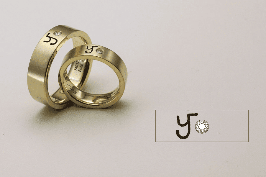 When the customer showed us the symbol at first, our designer did not get the hidden meaning at once, while the couple explained that J & Y are their name’s initial, and the symbol is a combination of J & Y. Our designer was so impressed by their creativity and admired their idea quite a lot in designing their own wedding rings.