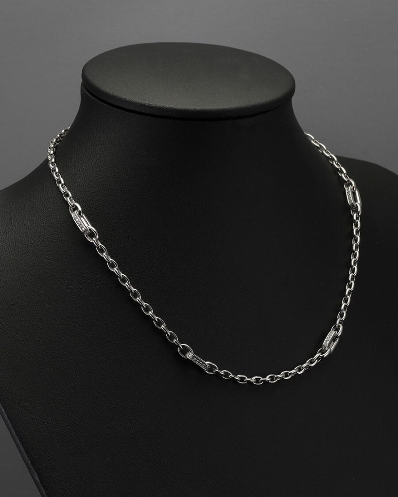 Today, we would like to showcase a bespoke necklace that was modified based on one of our popular chain designs – the Rolo chain. However, we took it a step further by adding a touch of elegance and luxury by incorporating a diamond cable chain as highlights. This modification not only enhances the appearance of the overall chain but also adds a touch of sophistication that elevates it to the next level.