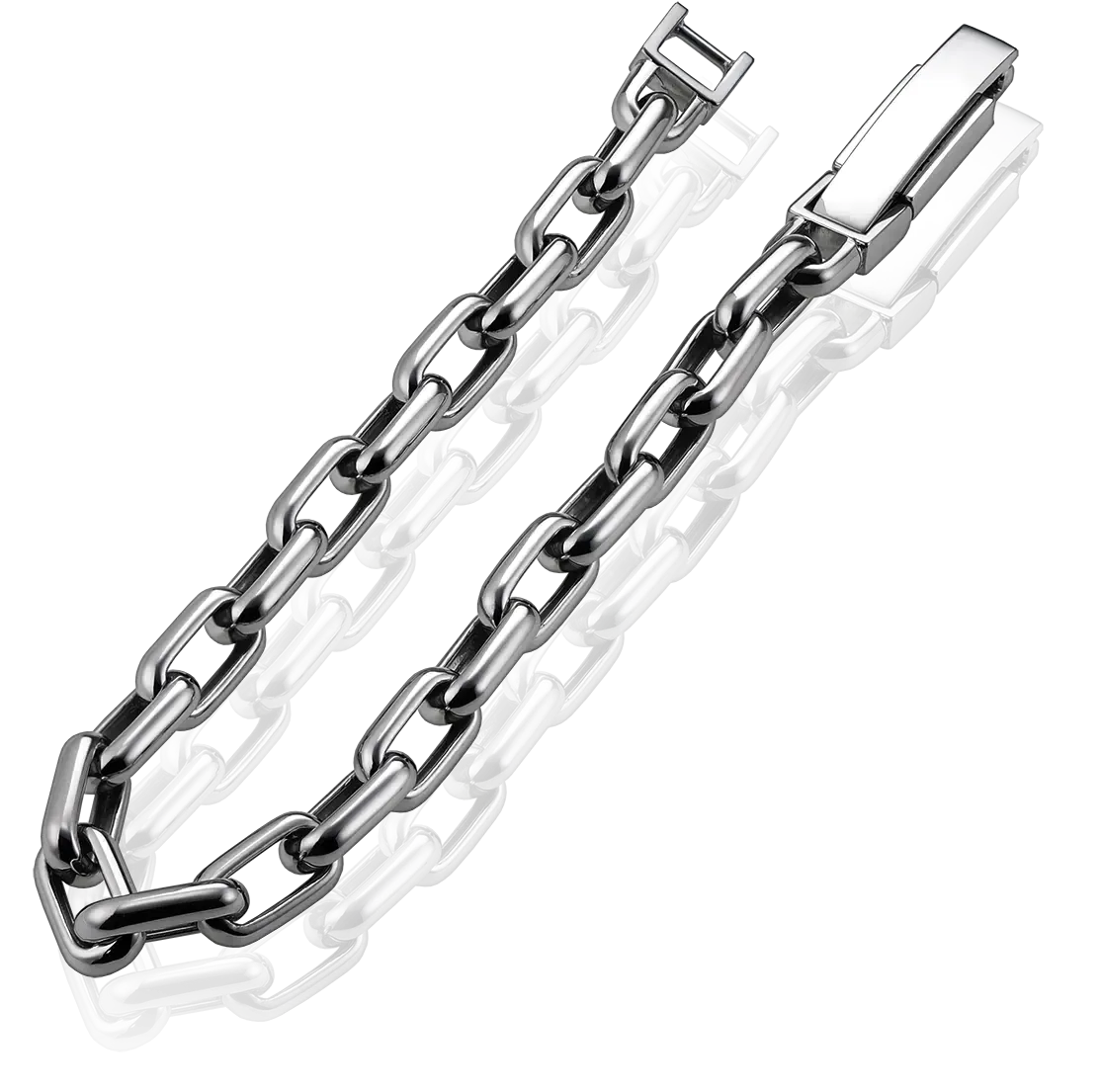 This cable chain is impressive. The 8mm width is bold and stylish, and the links are very well-made. The chain has a nice weight and a brilliant finish.