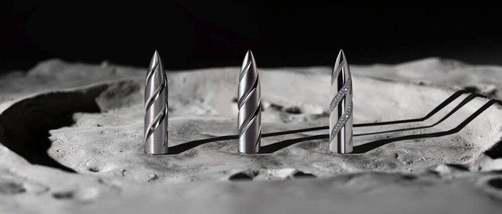Inspired by a quote relating to space exploration, “The eternal moon following the earth as a shadow would not be physically infallible but with steadfast purpose. The moon shines for every one of us, no matter where we are. The remarkable pendants represented bold elegance as well as daring aesthetics to explore new worlds. Not to mention the magnificence of the helix design, simple yet impactful. Whether you prefer everyday simplicity or bold statement pieces, the bullet pendants will serve the purpose.